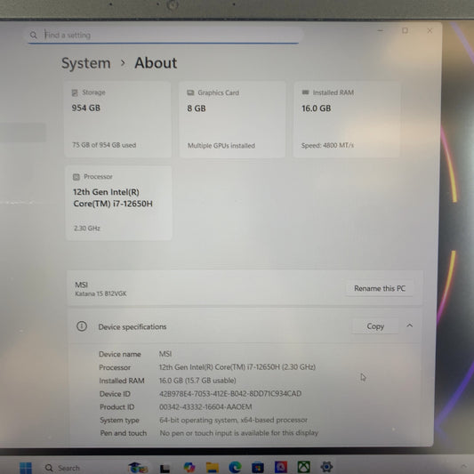 MSI Katana 15 B12VGK 15.6" i7-12650H 2.3GHz 16GB RAM 1TB SSD GeForce RTX 4070